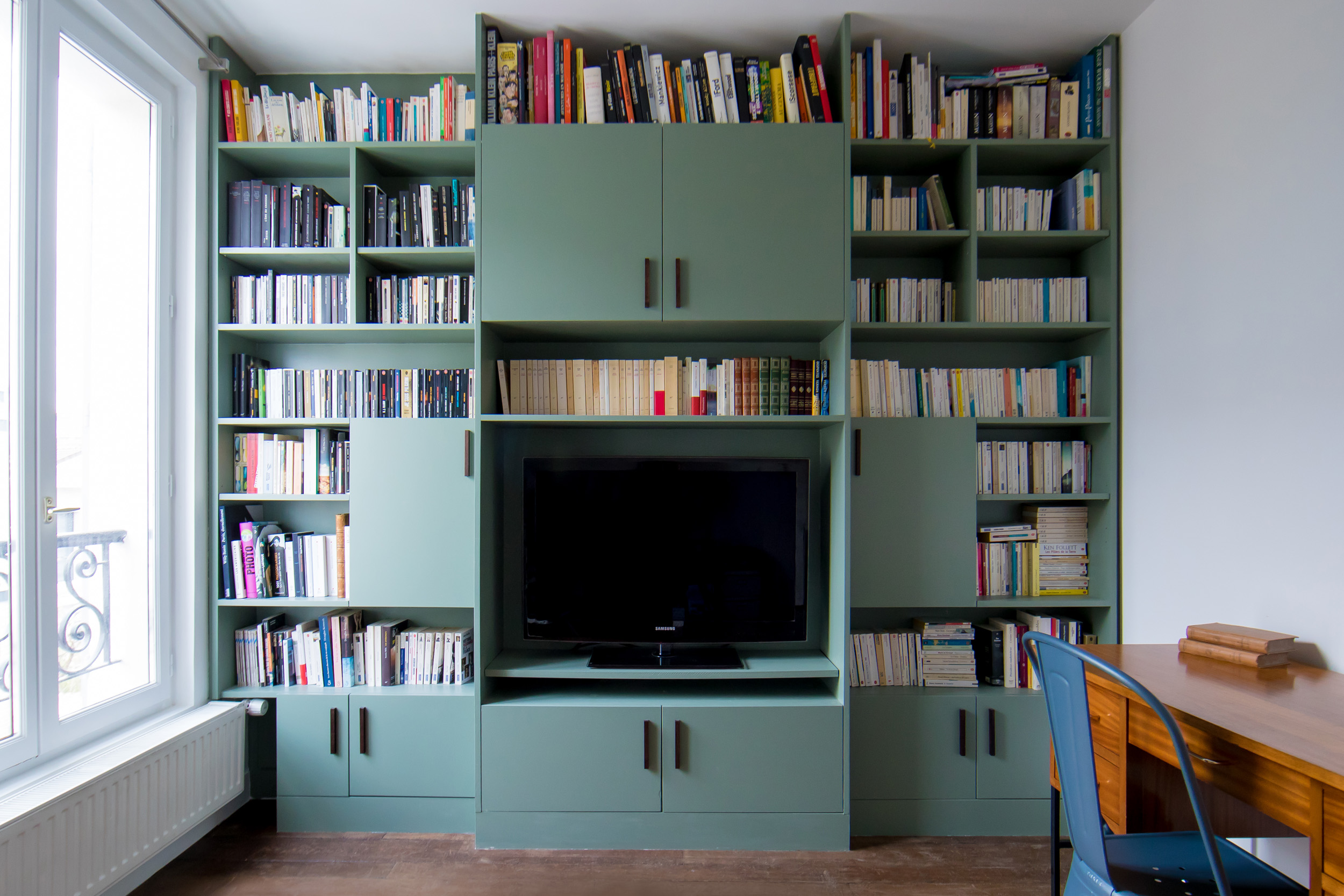 (bibliothèque , bureau , cuisine)
